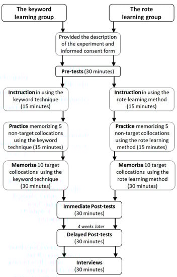 The procedures of the formal experiment are schematized in Figure 2 below. The pictures, L1 keywords, target collocations, and L1 definitions are provided in Appendix D.