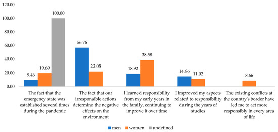 Figure 7. Reasons that led the respondents to become more responsible, given their gender. Source: Data from field quizzes, 2022.