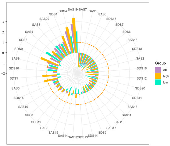 The Means and standard deviations (SD) of all items, and the results of t-tests between the high-neuroticism group and the low-neuroticism group are reported in Table 1. Table 1 shows that except for “Dyspnea” (SAS13) and Age, the scores of other symptoms show significant differences between the low-neuroticism group and the high-neuroticism group.
