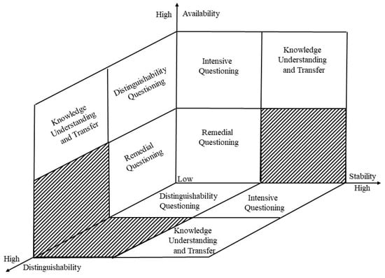 3. There are two situations in which learners’ cognitive structures are of high usability and low stability. One is that learners are not proficient enough in the knowledge points, and teachers should propose intensive questions during the teaching process to enhance the stability of learners’ cognitive structure. Another situation is that the correlation between knowledge in the original cognitive structure is not yet stable, and distinguishable questioning can promote stability.
