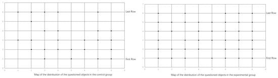 As shown in Figure 8, in the control class, the number of students being questioned was relatively small, and the positions of the students were concentrated in the first three rows of the class, which is the position of the teacher’s visual center. In the experimental class, there were a large number of students who were asked questions, and the location range almost covered the entire class. This indicates that the PTQ strategy can help teachers interact with students from different locations.