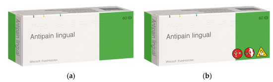 Example of a medication package used: (a) package without pictograms, respectively; (b) with pictograms. For every scenario, a different package design was used.