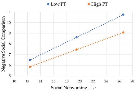 The process of adopting or imagining the viewpoints of others, commonly referred to as perspective-taking [], encompasses the cognitive ability to perceive and interpret the world through the lens of another individual []. Additionally, it involves the psychological processes through which individuals, stemming from their own standpoint or situational context, engage in the mental simulation or estimation of others’ perspectives and attitudes [,]. It is worth noting that perspective-taking not only influences the way in which individuals process external social information but also impacts their self-perception. Through engaging in perspective-taking, individuals can enhance their perception of shared attributes between themselves and others [], or alternatively, blur the boundaries that distinguish oneself from others []. The mediating role of self–other overlap has been identified as a significant factor in the relationship between perspective-taking and changes in self-concept []. For instance, when individuals engage in perspective-taking towards others, their self-perception tends to undergo alterations, leading them to perceive a greater similarity between themselves and the individuals whose perspectives they have considered. Furthermore, Galinsky et al. [] discovered that participants who underwent perspective-taking exercises focused on elderly individuals exhibited behavioral patterns that were more closely aligned with those of the elderly themselves. Similarly, completing visual-spatial perspective-taking tasks has been shown to significantly enhance individuals’ perception of self–other similarity []. This heightened sense of perceived similarity may contribute to a decrease in negative social comparisons. In addition, researchers have explored the influence of individuals’ self-esteem levels on social comparisons. Individuals with low self-esteem not only engage in more negative social comparisons on social networks [] but also derive more negative feelings from these comparisons []. However, perspective-taking is believed to maintain a positive association with self-esteem. Consequently, the increased self-esteem resulting from the process of perspective-taking may serve to mitigate negative social comparisons within the realm of social networking platforms. Based on these considerations, the present study hypothesizes that perspective-taking plays a moderating role in the relationship between social networking site usage and negative social comparisons.