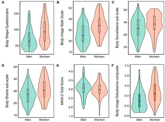 One explanation for this is that masculine stereotypes typically emphasise traits like pride, dominance, and success which encourage men to evaluate their bodies favourably when compared to body ideals, enabling self-promotion [108]. For women, it is normalised to participate in more critical conversations about their body shapes (e.g., fat talk) and body dissatisfaction amongst other women [109,110]. Women experience greater pressure to assess their bodies in a self-deprecating manner to appear agreeable and emphasise commonalities [111]. Indeed, our study found that women reported higher weight and shape concerns (in the BSQ) and evaluated their bodies more negatively in the present moment (in the BISS) compared to men. An accumulating body of research indicates that body talk and fat talk lead to body image disturbance across several domains e.g., body dissatisfaction, body surveillance, and body shape concerns [112]. Therefore, the higher BISS and BSQ scores in women in our study could be explained by women’s social pressures to assess their bodies more critically and with more scrutiny than men.