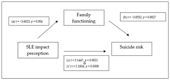 Finally, we must point out a theoretical limitation related to mediation analyses. This type of analysis is based on confirmatory studies [62], which implies that results that support the hypothesis do not necessarily mean that the hypothesis is true. Therefore, to be able to confirm that a significant mediation model actually implies mediation in the data, a theoretical basis for the mediation effect must be developed prior to the analysis. Otherwise, there would be no way to distinguish a genuine mediation from a spurious relationship. In our case, based on the literature (e.g., [36]), we posited a mediation relationship before we started our analysis. It is reasonable to think that the relationship between the perception of the impact of SLEs and suicide risk is not spurious, as it is theoretically supported. Furthermore, it should be noted that our results for the first mediation model point to a partial mediation model since the relationship between SLE impact perception and suicide risk decreases when controlling for the potential mediator but does not disappear entirely. This means that family functioning perception does not fully account for the relationship between the perceived impact of SLEs and suicide risk. However, in the second mediation model, when controlling for sex and age, the results supported a complete mediation. Our results open the door to further studies on the relationship between the perceived impact of SLEs and suicide risk. In this regard, treating the family functioning as a single global measure prevented us from knowing which specific component(s) of the family relationship plays a significant role in mediating the effect of SLE impact perception on suicide risk.