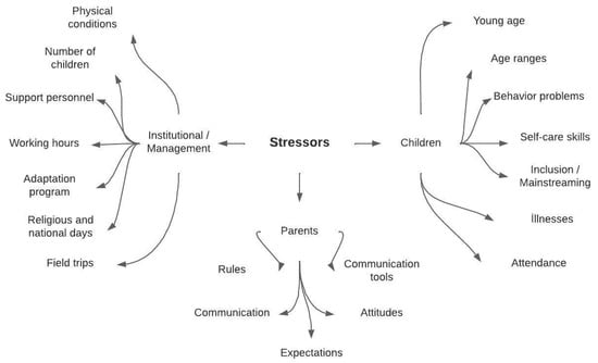 - Erdiller, Z.B.; Doğan, Ö. The examination of teacher stress among Turkish early childhood education teachers. Early Child Dev. Care 2015, 185, 631–646. [Google Scholar] [CrossRef]