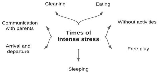 - Sjödin, F.; Neely, G. Communication patterns and stress in the preschool: An observational study. Childcare Pract. 2017, 23, 181–194. [Google Scholar] [CrossRef]