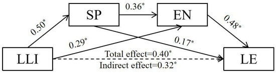 Mediating effect of SP and EN between LLI and LE. * p < 0.05.