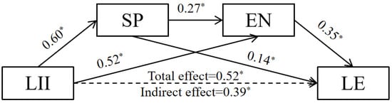 Mediating effect of SP and EN between LII and LE. * p < 0.05.