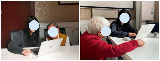 Participants sat at a computer with a researcher providing assistance (Figure 1). The ChatGPT chatting method was explained, and both used headsets. Participants communicated verbally, with input converted to text and manually corrected if necessary. ChatGPT replies were presented as voice output to simulate live chat and reduce the reading burden. Researchers assisted with technology but did not interfere with chat content. The first session familiarized participants with the chat style, followed by seven 15–30 min one-on-one sessions.