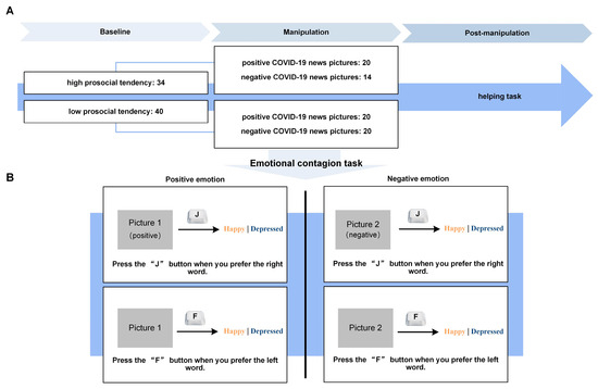 Firstly, participants were required to complete an emotional contagion task that included emotional pictures related to the pandemic. Secondly, the Positive Affect and Negative Affect Scale (PANAS) was used to measure the students’ emotional state before and after the emotional contagion task. The success of emotional contagion was judged by comparing the students’ pre- and post-emotional states. Lastly, participants were asked to finish the prosocial behavior task after the emotional contagion task. The experiments were conducted uniformly in the laboratory, and all participants signed an informed consent form before the experiment. A total of 30 CNY was given to each participant after the experiment.