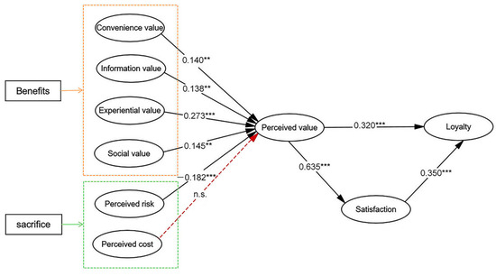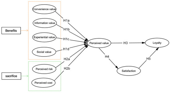 This study, based on platform characteristics and drawing on the relevant research of Zhong et al. [11,66,67], divides perceived value into two components: perceived benefits and perceived sacrifices. Perceived benefits include four dimensions: convenience value, information value, experiential value, and social value, while perceived sacrifices consist of two aspects: perceived risk and perceived cost.