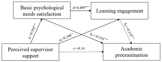 Wang, L.; Wang, G. Perceived Supervisor Support and Academic Procrastination in Postgraduate Students: Roles of Basic Psychological Needs Satisfaction and Learning Engagement. Behav. Sci. 2024, 14, 1005. https://doi.org/10.3390/bs14111005