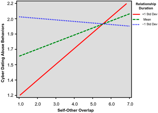 Moderating role of the relationship duration in the association between self-other overlap and cyber dating abuse behaviors.