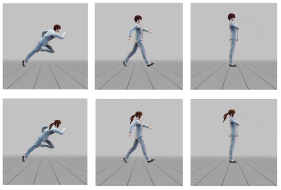Illustration of the postures including running, walking, and standing. We only presented examples moving in the right direction.