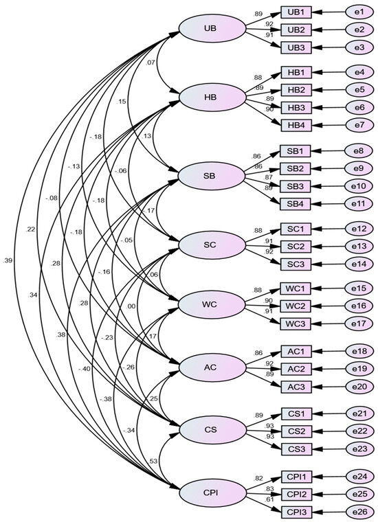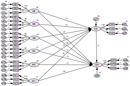 | Item | CITC | Cronbach’s Alpha if Item Deleted | Standardized Factor Load Values | Cronbach’s α | AVE | CR | UB | HB | SB | SC | WC | AC | CS | CPI | |