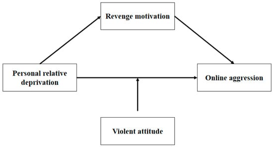 In this study, we investigate whether revenge motivation acts as a mediator in the connection between PRD and online aggression, as well as whether a violent attitude serves as a moderator in this relationship (refer to Figure 1).