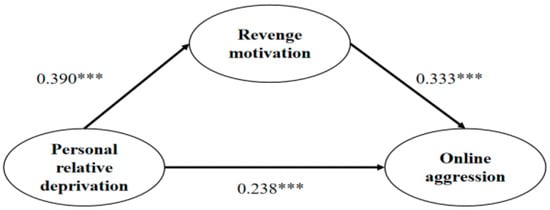 On the one hand, the theory of relative deprivation holds that PRD will lead to an individual’s sense of injustice, which not only fosters feelings of anger but also generates revenge motivation. Specifically, the sense of deprivation often triggers feelings of injustice and frustration, which can create a perceived threat to one’s social standing or identity. This emotional response can then translate into a desire for revenge as individuals seek to restore their sense of fairness and control [31,49,50]. A previous study showed that the injustice perception triggered by PRD increases people’s motivation to retaliate against perpetrators [51]. Moreover, Hu (2016) also found that inequalities triggered by PRD could trigger revenge motivation in the workplace [52]. Therefore, we hypothesize that revenge motivation mediates the relationship between PRD and online aggression.