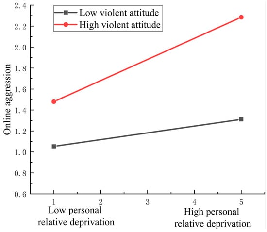 According to the general aggression model [62], the evaluation of the appropriateness of aggressive behavior influences whether or not aggression was utilized to solve problem. One of components of the evaluation is the judgment of whether aggressive behavior is in line with individuals’ self-regulating internal standers (e.g., internalized moral standers and social norms). When individuals perceive aggressive behavior as incongruent with social norms, aggressive behaviors are unlikely to be carried out [62,63]. A violent attitude is an important factor for the evaluation process and may play a critical role in reducing the association between PRD and online aggression. It refers to the tendency of an individual to evaluate and explain violence in a positive way [2,64]. When individuals suffer from PRD, they may choose whether to carry out aggressive behavior based on their own attitude to the aggression. Specifically, individuals with a highly violent attitude are prone to evaluating and interpreting violent behavior in a positive light [65]. These tendencies make them more likely to view violent behavior as acceptable and show more aggression than those with low violent attitudes [66]. Thus, a high level of violent attitude may exacerbate the association between PRD and online aggression.
