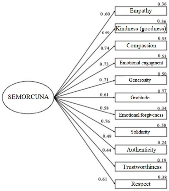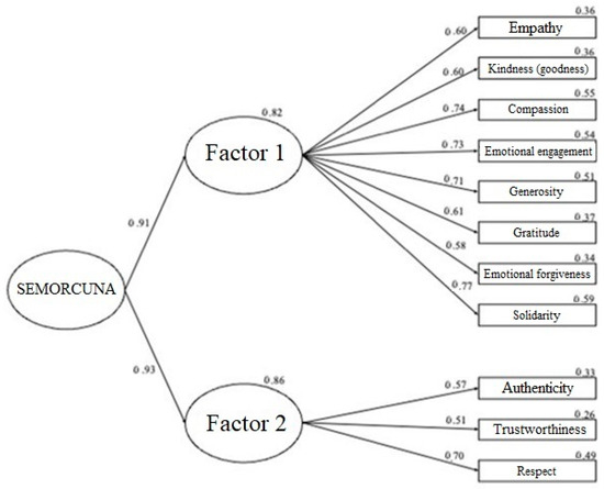 To conclude, the reliability of the SEMORCUNA questionnaire was analyzed from two different perspectives: as a unidimensional scale and as a two-factor scale. The decision was made to test the instrument’s reliability from a unidimensional perspective due to the high percentage of variance explained by the first factor and the limited number of items in the second factor, as well as for theoretical reasons.