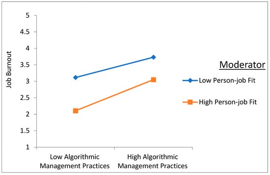 Person–job fit moderates the relationship between algorithmic management practices and job burnout, and the positive relationship becomes weaker (stronger) when employees have a higher (lower) degree of person–job fit in the workplace.