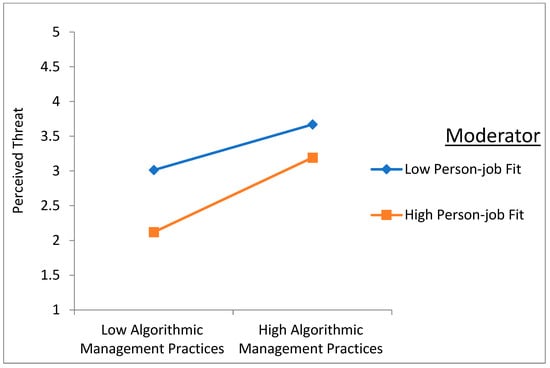 Person–job fit moderates the relationship between algorithmic management practices and perceived threat, and the positive relationship becomes weaker (stronger) when employees have a higher (lower) degree of person–job fit in the workplace.