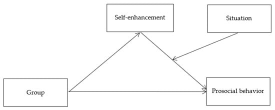 In addition, the self-enhancement of altruistic traits mediates the influence of interdependence on helping behaviors [35]. This suggests that self-enhancement is not solely about individual self-perception; it also affects one’s willingness to assist others in social interactions. Consequently, it is reasonable to speculate that when inducing a state of narcissism, individuals may display prosocial behavior as a result of self-enhancement, i.e., a positive self-perception [23]. However, it is essential to recognize that the impact of this relationship may vary across different situations [36]. As the behavioral outcomes of self-enhancement need others’ regard [26,27], public situations providing potential for reputation enhancement and social approval can intensify the effect of self-enhancement on prosocial behavior. Conversely, in anonymous situations without external recognition, even if the inclination towards self-enhancement is activated, individuals may opt for self-indulgent choices and thus display authentic behavior.