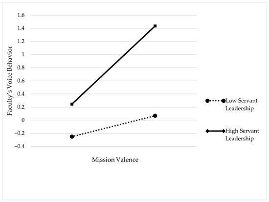 Third, this study helps reveal the moderating role of servant leadership on the relationship between thriving at work and faculty’s voice behavior and its moderating effect on the entire mediation mechanism of mission valence–thriving at work voice behavior. By using servant leadership as a moderating variable, this study shows that whether university faculty engage in voice behavior is not only influenced by their thriving at work but also by their department leadership. The leadership style plays an even more critical role. Only when university faculty perceive high servant leadership does the association between thriving at work and voice behavior become significantly stronger, and the relationship between mission valence and voice behavior through thriving at work is more pronounced. This finding aligns with existing conclusions about the relationship between servant leadership and employee voice behavior in both the public and private sectors [