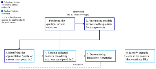 The excerpts were selected taking into consideration the purpose of the question that produced the answers and their corresponding DRs. For the processing phase, the dataset was organized based on the type of question.