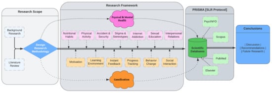 This study uses relevant research to investigate the potential of gamified scenarios to promote health and well-being among children and adolescents. Therefore, this review aims to validate the primary literature published within the last five years that addresses the promotion of children’s and adolescents’ physical and mental health through innovative educational methods based on gamified scenarios (Figure 1).
