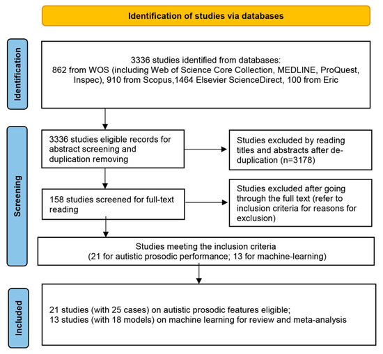 - Asghari, S.Z.; Farashi, S.; Bashirian, S.; Jenabi, E. Distinctive prosodic features of people with autism spectrum disorder: A systematic review and meta-analysis study. Sci. Rep. 2021, 11, 23093. [Google Scholar] [CrossRef]
