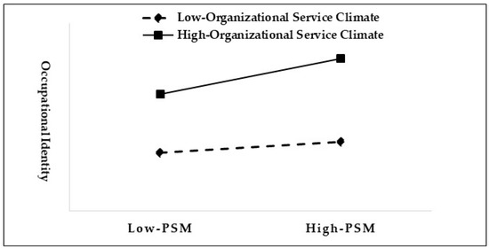 Moderating effect of organizational service climate on PSM and occupational identity.