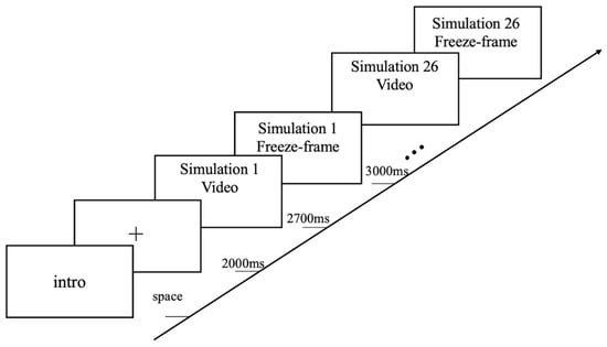 Three GoPros (San Mateo, CA, USA, portable cameras with a resolution of 4K and a refresh rate of 24 Hz) and a SONY FDR-AX45 camera (Tokyo, Japan, 4K, 24 Hz) were used to capture experimental stimuli. Eye-tracking experiments were conducted using the Tobii Pro Spectrum [49] (Stockholm, Sweden, sampling rate: 1200 Hz, demonstrated in previous studies to meet the experimental requirements).