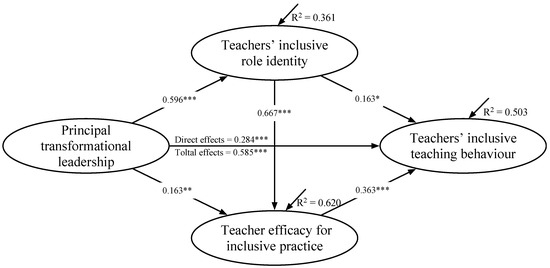 Wang D, Huang L, Huang X, Deng M, Zhang W. Enhancing Inclusive Teaching in China: Examining the Effects of Principal Transformational Leadership, Teachers’ Inclusive Role Identity, and Efficacy. Behavioral Sciences. 2024; 14(3):175. https://doi.org/10.3390/bs14030175