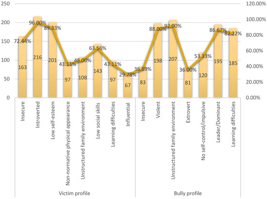 Focusing on the coexistence problem of bullying, it is worth noting that the teachers identified the main profiles of both the victims of bullying and bullies (Figure 2).