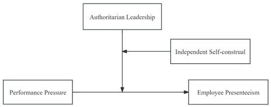 Self-determination theory suggests that employees with different traits will have different levels of internalization in response to leader influence [26]. Authoritarian leadership can lead to varying degrees of external stress in subordinate interactions, yet perceptions of this external stress can be moderated by individual trait factors. And individuals with high levels of independent self-construal have a strong sense of independence and prioritize the expression of intrinsic traits. They often adopt behaviors that are consistent with their own traits and perceptions [27,28]. Furthermore, existing studies have shown that personality factors such as independent self-construal play an important moderating role in the relationship between leadership style and employee behavior [29,30]. Therefore, this study hypothesizes that employees with high levels of independent self-construal will experience limited psychological and changes when faced with authoritarian leadership, and will be more likely to perceive their behavior as autonomous. When deciding whether to engage in presenteeism under pressure to perform, these employees are less likely to take into account possible criticism and rejection from their leaders. This reduces the excessive control exerted by authoritarian leaders over employees and undermines the positive moderating effect of authoritarian leadership on both performance pressure and presenteeism.