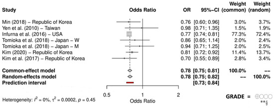 - DerSimonian, R.; Laird, N. Meta-Analysis in Clinical Trials. Control. Clin. Trials 1986, 7, 177–188. [Google Scholar] [CrossRef]