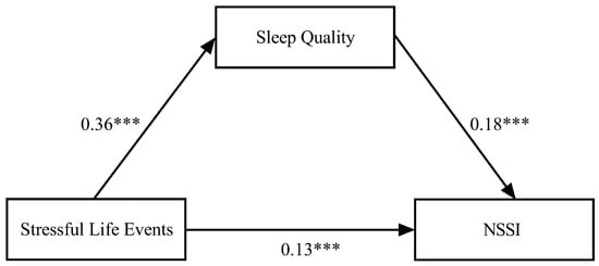 The mediating effect of sleep quality in the relationship between stressful life events and NSSI. Note: NSSI, non-suicidal self-injury. *** p < 0.001.