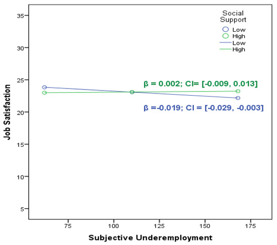 Hypothesis 2. Social support moderates the relationship between subjective underemployment and job satisfaction such that the relationship is not significant when social support is higher.