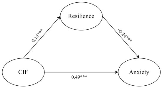 The mediating effect of resilience in the relationship between COVID-19 information FOMO and anxiety. CIF: COVID-19 information FOMO. *** p < 0.001.