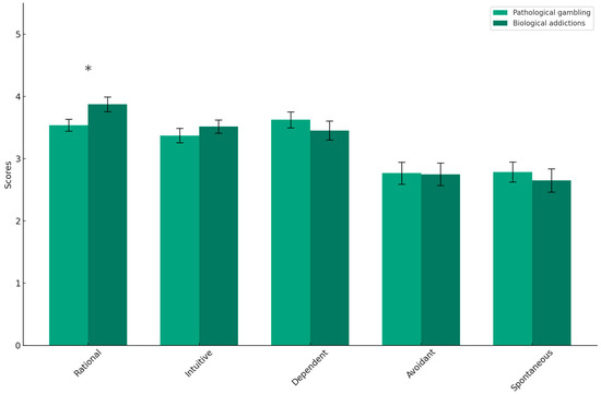 Scores on the GDMS for each of the decisional styles. The asterisk indicates that differences were significant at the 0.05 level.