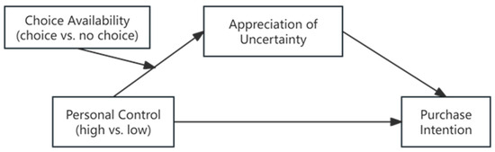 We further propose that the appreciation of uncertainty inherent in mystery products mediates the relationship between personal control and purchase intention. Uncertainty in products offers both opportunities and risks, and individuals’ psychological state can influence their perception. We posit that consumers’ perception of uncertainty in mystery products is shaped by their sense of personal control. Specifically, we predict that consumers with a low sense of personal control will be less inclined to appreciate the uncertainty embedded in mystery products, compared to those with a high sense of personal control. Consequently, this diminished appreciation of uncertainty is expected to reduce their intention to purchase mystery products. Therefore, we formally hypothesize the following.