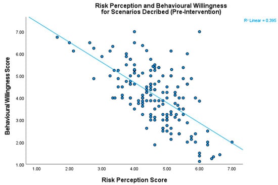 Risk and willingness were found to be significantly negatively correlated (r = −0.63, p < 0.001), which served to validate our assumption (Figure 3).