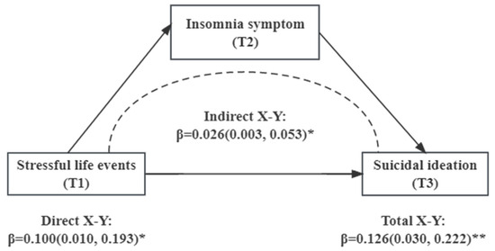 Moreover, the mediating role of insomnia symptoms in the association between specific types of SLEs and SI was examined. However, no significant mediating effect of insomnia symptoms was found in any specific type of SLEs (Figure S1 in the Supplementary Materials).