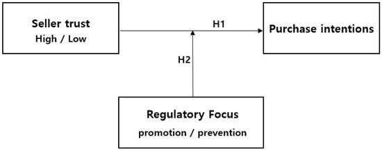 Meanwhile, the regulatory focus theory within prospect theory explains how individuals regulate and control their behavior to achieve specific goals [12]. According to Crowe and Higgins [13], regulatory focus entails two psychological behavioral types that people exhibit to achieve their goals, namely promotion focus and prevention focus. Promotion-focused individuals focus on achieving goals, while prevention-focused individuals strive for stable prevention by minimizing losses [14]. Previous studies on regulatory focus reveal its influence on consumer perceptions of problems, information processing, memory, and evaluations of alternatives in consumer decision-making [13,15]. By incorporating these dimensions of regulatory focus, the present research will offer new insights into how different motivational orientations can further complicate or facilitate trust-building processes in C2C transactions, thereby impacting purchase intentions in a significant way.
