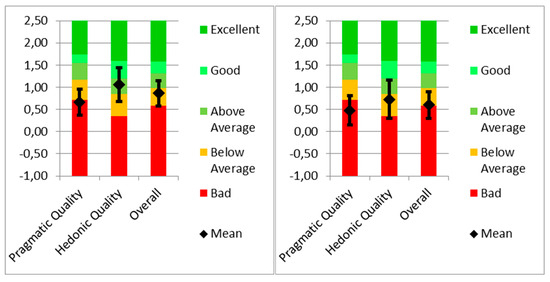 - Schankin, A.; Budde, M.; Riedel, T.; Beigl, M. Psychometric Properties of the User Experience Questionnaire (UEQ). In Proceedings of the 2022 CHI Conference on Human Factors in Computing Systems (CHI ‘22), New Orleans, LA, USA, 20 April–5 May 2022; Barbossa, S., Lampe, C., Appert, C., Shamma, D.A., Drucker, S., Williamson, J., Yatani, K., Eds.; Association for Computing Machinery: New York, NY, USA, 2022; pp. 1–11. [Google Scholar] [CrossRef]