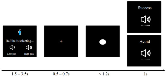 Based on relevant literature using the competitive reaction time paradigm and the threshold of physiological harm caused by white noise [26], this study used white noise as the form of punishment. Twelve different intensity levels of white noise patterns (ranging from 55 dB to 110 dB) were created using the “Cool Edit 2.1” software. Before the study, participants listened to the white noise at each decibel level through headphones and rated their personal tolerance for each noise pattern on a 5-point Likert scale (0: bearable; 1: slightly difficult to bear; 2: quite difficult to bear; 3: very difficult to bear; 4: extremely difficult to bear). In the passive stage, the noise rated as “extremely difficult to bear” (105 dB) was used as the high-intensity punishment option, while the noise rated as “slightly difficult to bear” (70 dB) was used as the low-intensity punishment option.