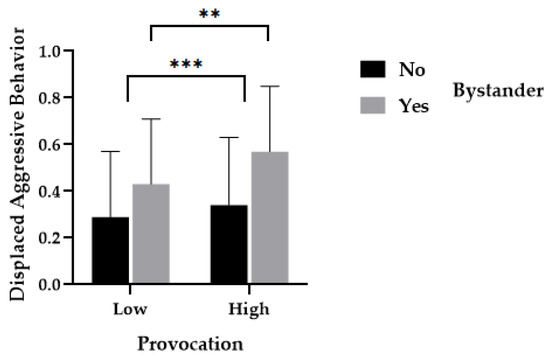 The effects of bystanders’ presence on displaced aggression in provocative situations. Note. ** p < 0.01, *** p < 0.001.
