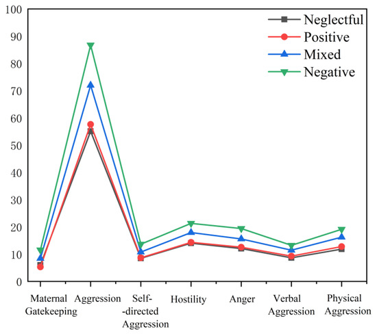 On the contrary, under the positive parenting style, mothers exhibit the least amount of gatekeeping behavior, fathers exhibit the lowest level of negative parenting and the highest involvement, and adolescents display the lowest aggressive behavior. Contrary to our expectation, adolescents from families with neglectful parenting also demonstrated the lowest aggressive behavior. The similarity between the two types of families suggests that it is the lowest level of negative parenting (including rejection and overprotection) that relates to the lowest adolescent aggression. Other studies support this interpretation [8,9,10].