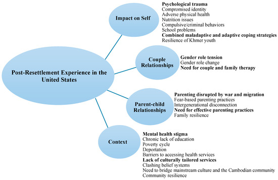 | [18,40] | Cambodian refugees | -Gang violence, aggressive behaviors, school dropout, substance abuse, emotional dysregulation, and mental illnesses that led to incarceration and deportation were reported. |